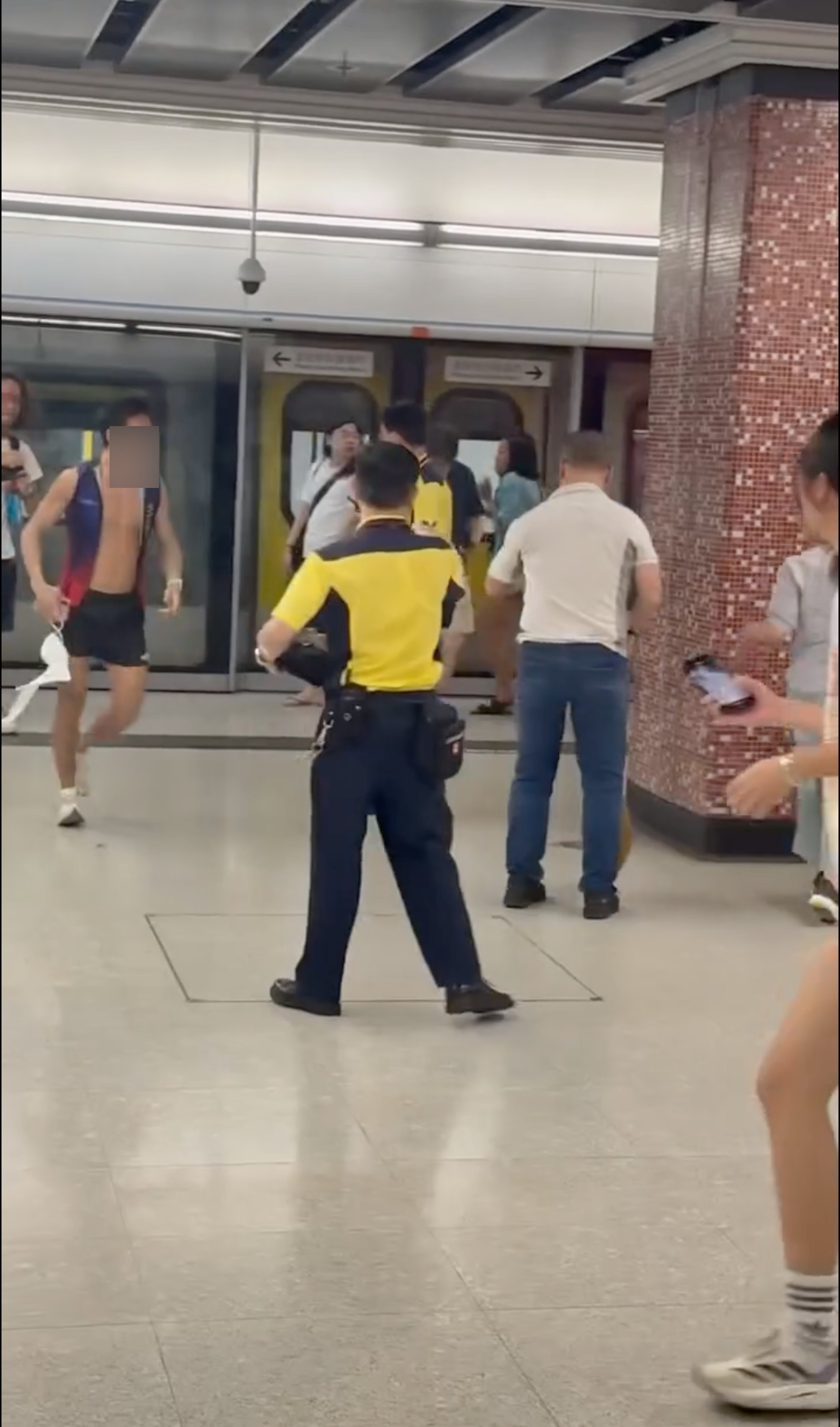 事發時,不少途經乘客駐足圍觀,有人舉起手機拍攝「戰況」。數名港鐵職員隨後趕抵現場,其中一位戴眼鏡的男職員大喝「停手!」,語氣強硬,最終成功壓止衝突,並喝令兩人不得離開。警方接報後到場,經調查將涉事兩人拘捕。