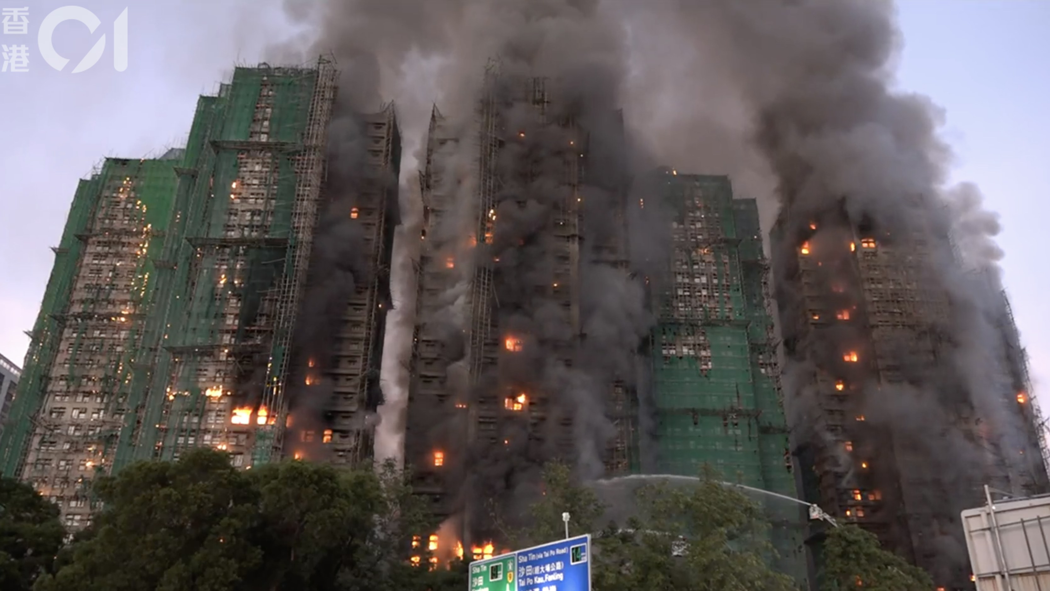 宏福苑多座樓宇被猛烈火勢與濃煙迅速籠罩。
