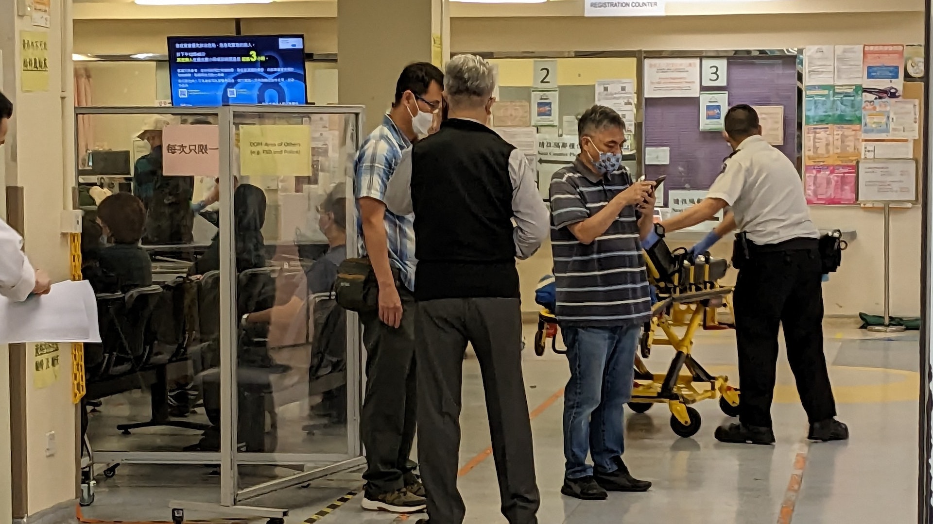 死者胞兄(右一)到醫院了解情況。(黃偉民攝)