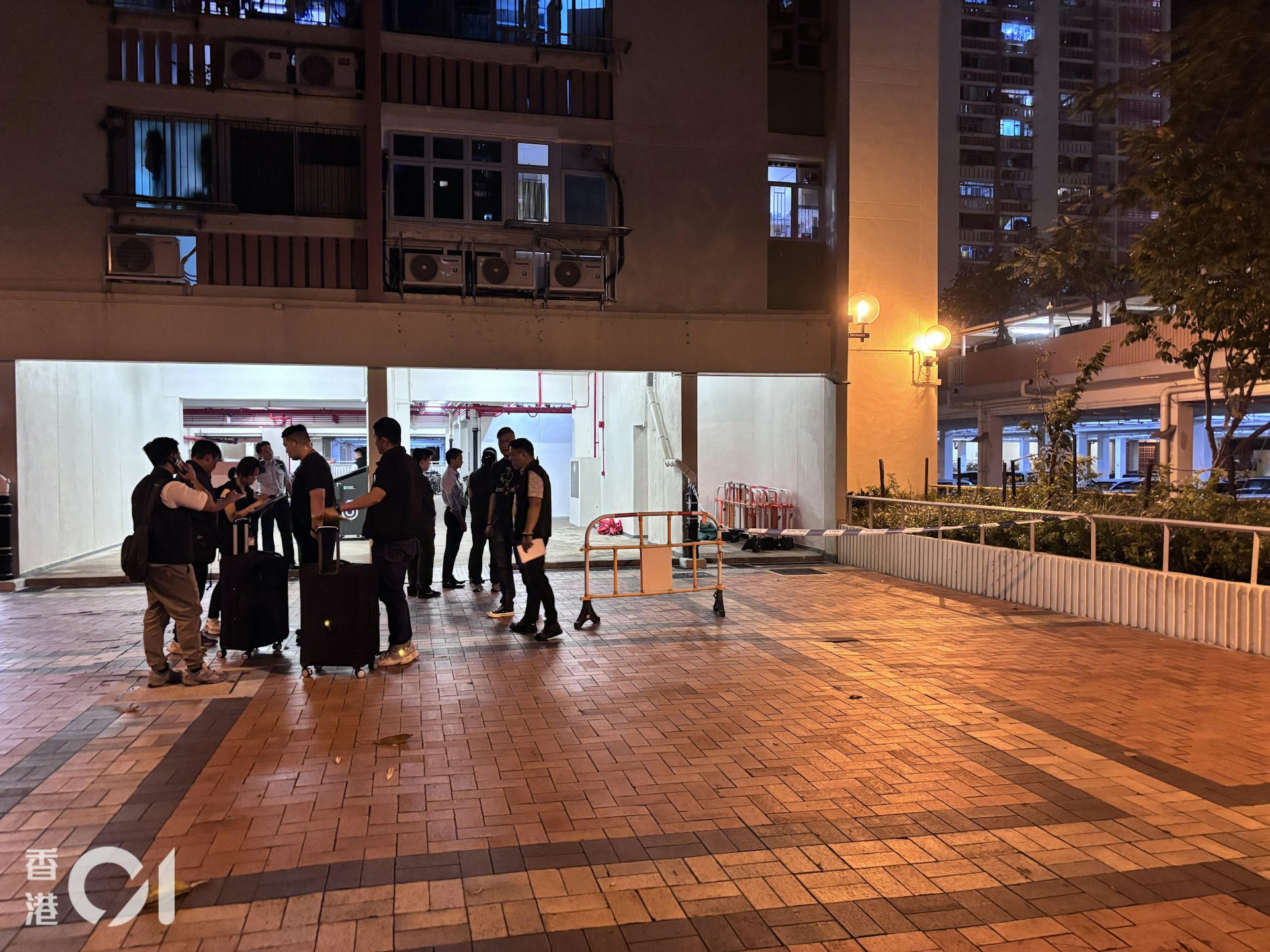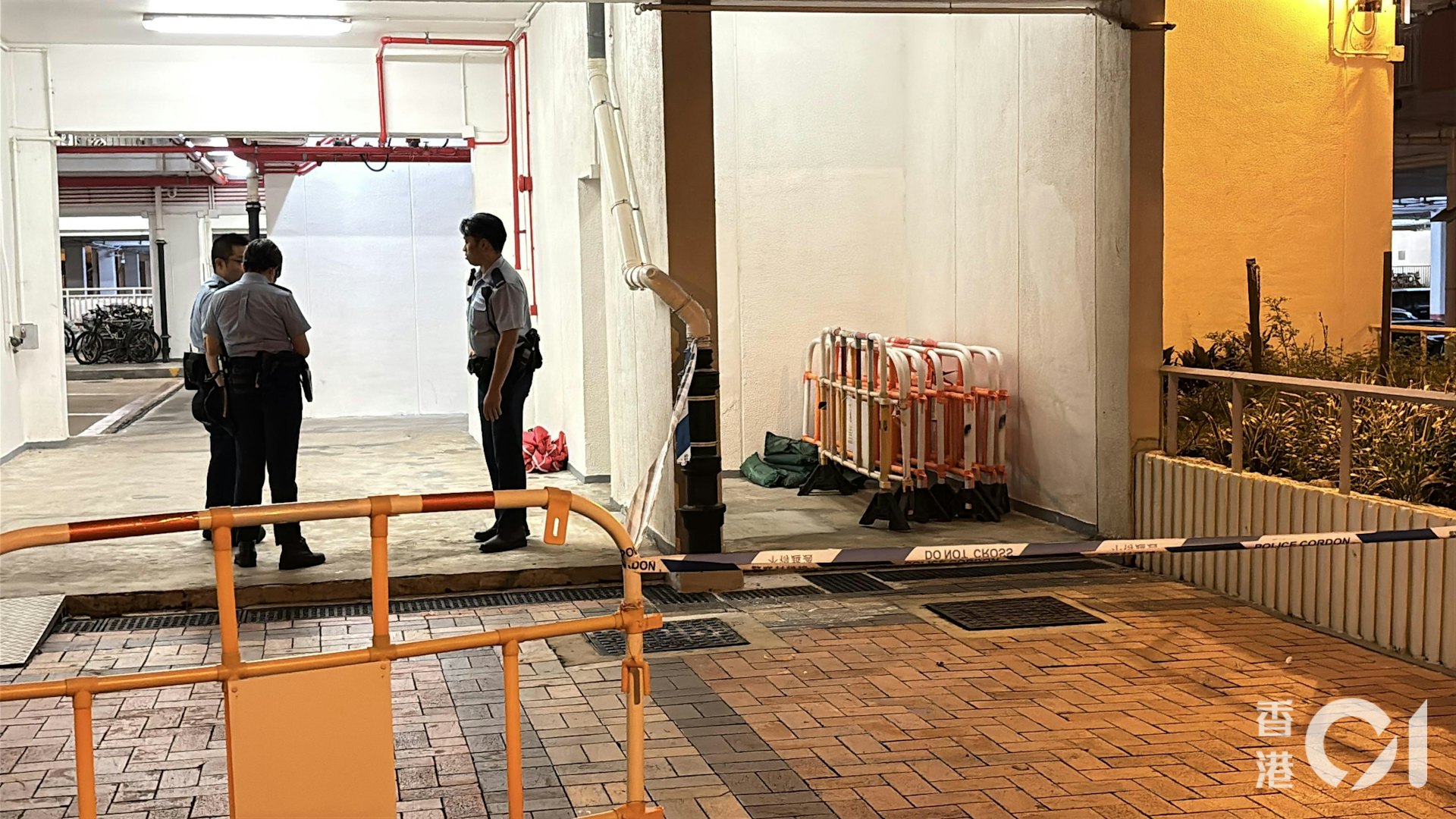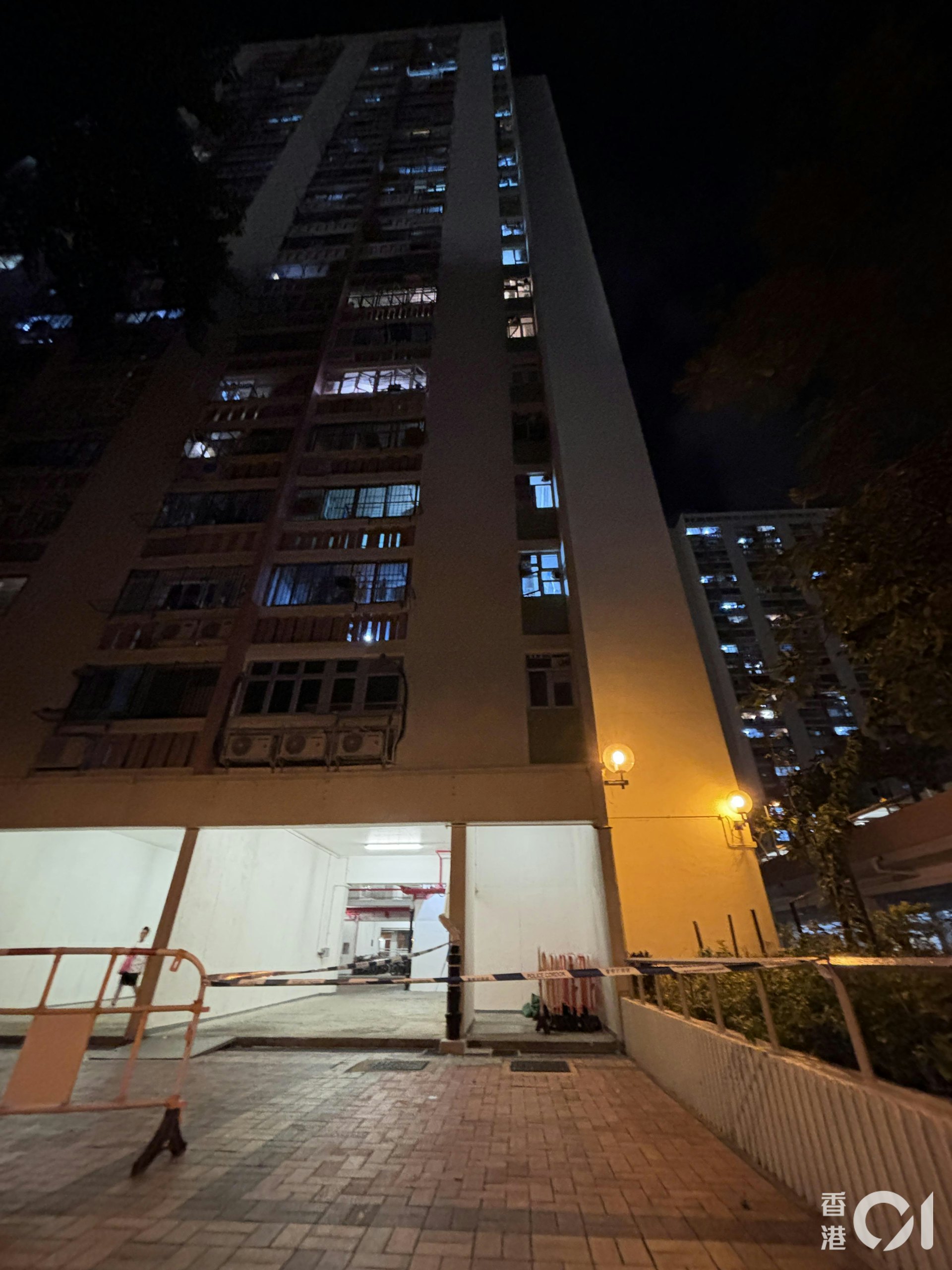 沙田禾輋邨康和樓一名女童墮樓不治,警方封鎖現場調查。(林振華攝)