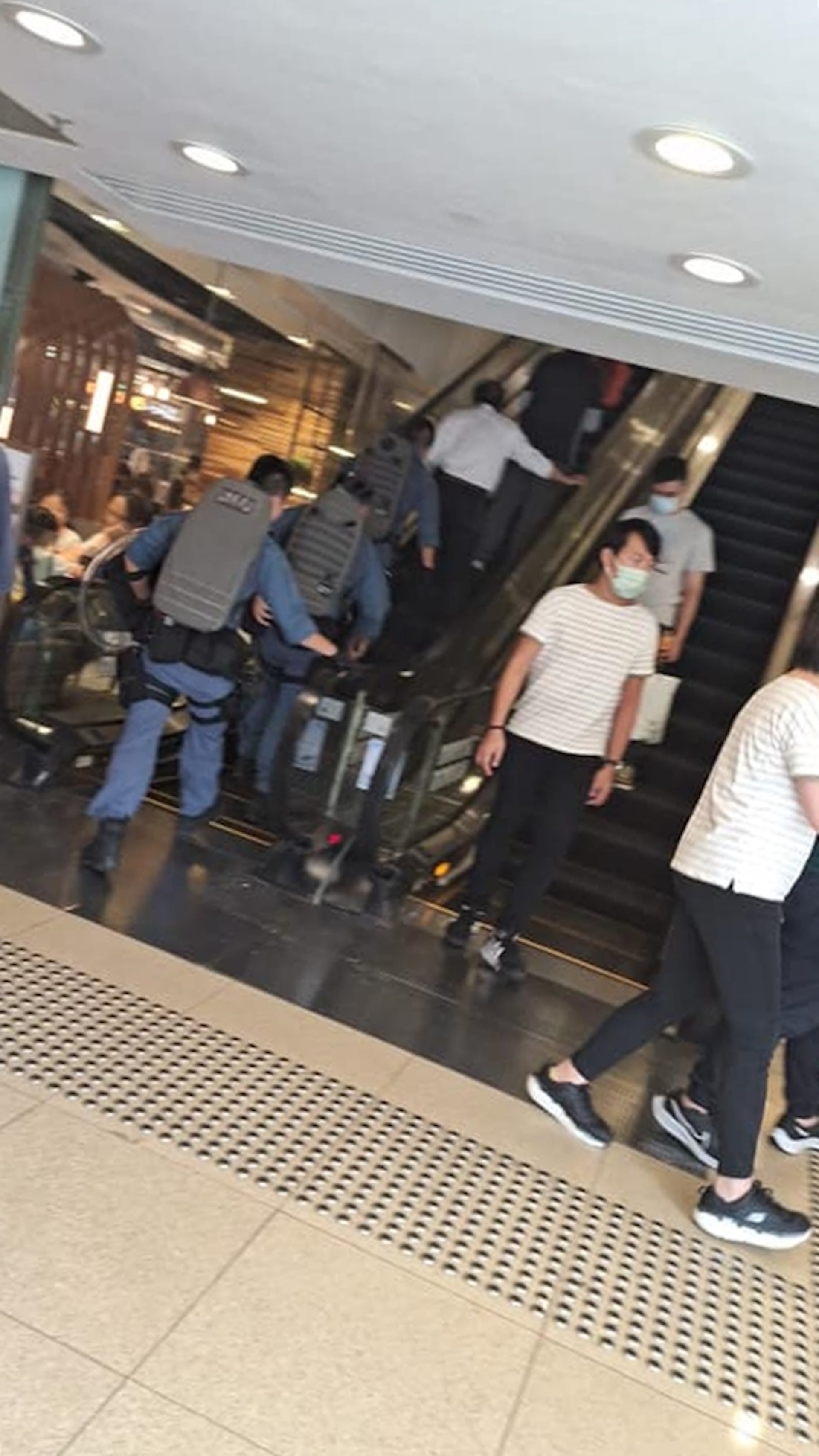 大批全副裝備的警員在商場內展開搜索行動,追緝涉案疑人。