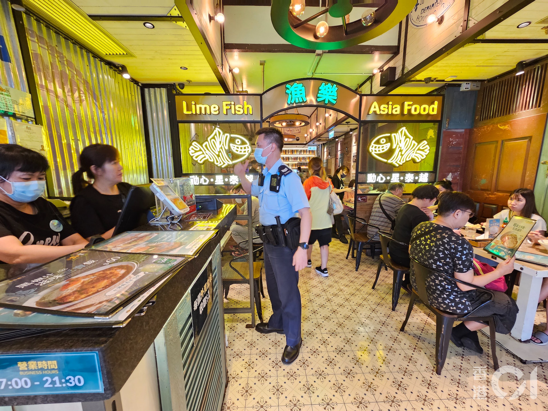 多名警員其後進入一間餐廳內進行調查。