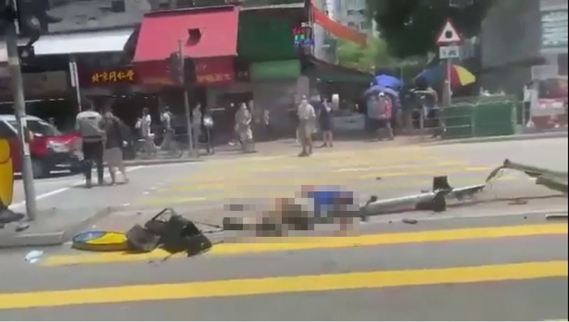 大埔廣福道昨發生罕見嚴重交通意外,一輛的士突然失控剷上行人安全島,造成一死九傷。現場一名59歲鄭姓男子當場重創喪命,另有多名途人包括孕婦及幼童受傷,部分情況危殆,場面怵目驚心。